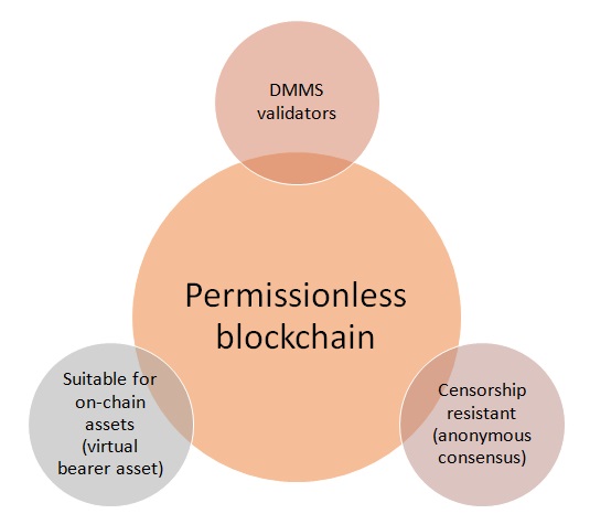 • trustlessness (reliance on algorithmically enforced rules to process transactions with no human interaction required).