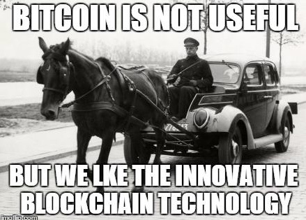 So what about that cold, heartless world of closed, walled-off gardens managed by intranet builders and training wheel makers?  After all, anarchic chains are supposedly too woolly for regulated institutions like banks and according to random people on social media who talk to other random people on social media about financial infrastructure in 140 characters, banks now have decided to reinvent databases… But With Blockchain™.  Because banks — which collectively have built and operate the largest IT infrastructure globally — don’t understand technology and have just rebranded SQL databases to get some easy softball press releases.  Right?