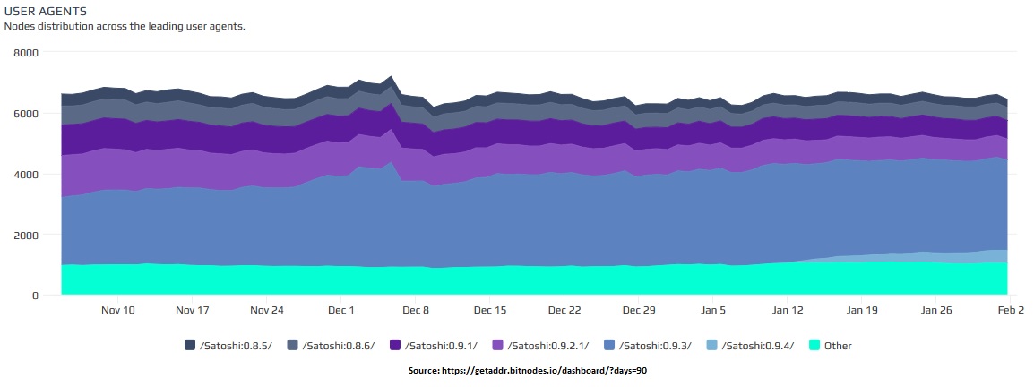 In early March 2014, there were approximately 10,000 nodes however over the past year there has been a decline by roughly 1/3. What does this distribution of roughly 6,400 current nodes look like?